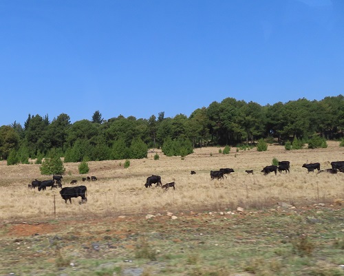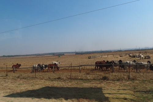 そして、サバンナ寄りであまり牧場は見かけなかったのに、クルーガー国立公園のゲートに入る少し前に、道路の脇に牛たちが現れ、